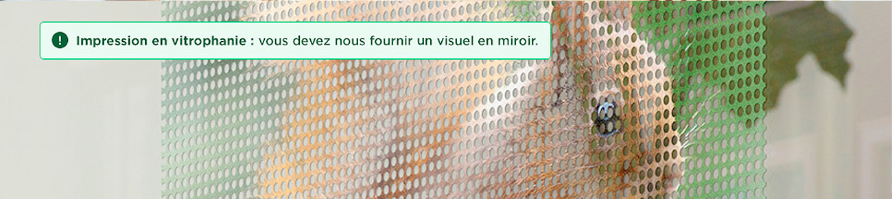 Attention, vous devez nous fournir un visuel en miroir pour une impression en vitrophanie.