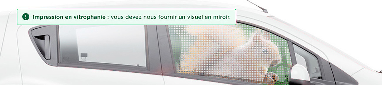Attention, vous devez nous fournir un visuel en miroir pour une impression en vitrophanie.