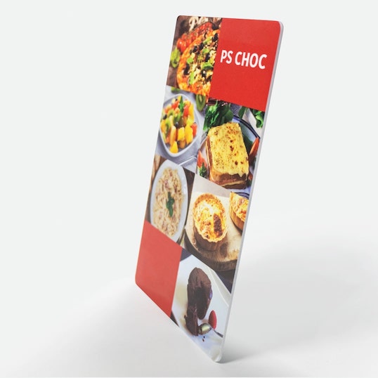 L'impression de plaque de rallye est disponibles en différentes épaisseurs en fonction de la matière choisie. Le PS CHOC, satiné, de 1 mm et 2 mm, est très esthétique avec sa face brillante et offre un très bon rapport solidité/poids. Le PVC, quant à lui, donne un résultat plus solide et insensible aux changement de températures.